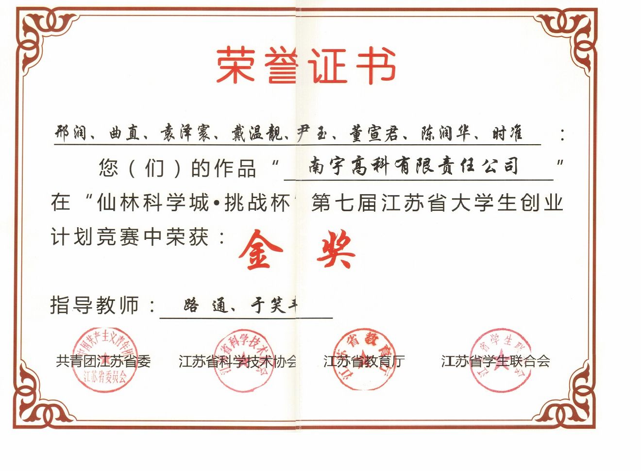 6. As the supervisor, my innovation team respectively won the Bronze Prize of the Seventh "Colledge Cup" and the Golden Prize of the Eighth "Colledge Cup" of Chinese College Students of Academic Science and Technology at China and Jiangsu Province, which is the highest level contest for graduate and undergraduate students in China, 2012